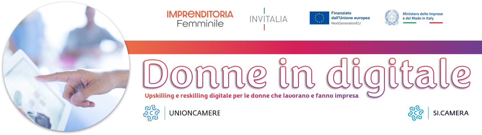 Confagricoltura Donna Veneto segnala l’avvio della 4° edizione di “Donne in digitale” il percorso formativo progettato e realizzato da Si.Camera nell'ambito del Piano nazionale per la promozione dell'imprenditorialità femminile promosso dal Ministero delle Imprese e del Made in Italy a valere su risorse del PNRR e realizzato da Invitalia in collaborazione con Unioncamere. Il percorso è destinato a: • presidenti e componenti dei Comitati per l’imprenditoria femminile istituiti presso tutte le Camere di commercio d’Italia; • donne che fanno impresa di tutti i settori produttivi ed economici; • aspiranti imprenditrici ..