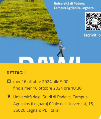 Mercoledì 16 ottobre dalle ore 9 alle ore 18.30 presso ad Agripolis si terrà la giornata formativa