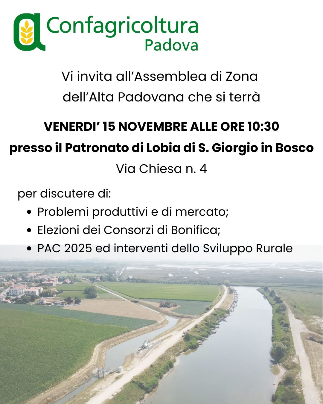 Adesioni entro l'11 novembre a Confagricoltura Padova tel. 049 8223511 padova@confagricoltura.it