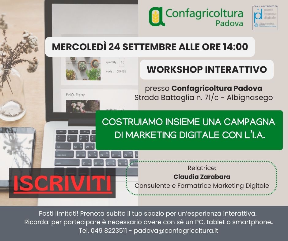 Entrambi gli incontri si terranno presso la sede di Confagricoltura Padova in Strada Battaglia 71/c, Albignasego, e saranno guidati dalla Dr.ssa Claudia Zarabara, consulente e formatrice in marketing digitale.