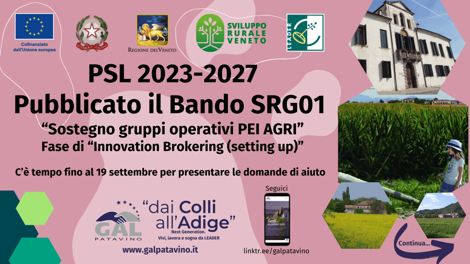 Pubblicato un nuovo bando del GAL Patavino: 200.000 euro per le reti di soggetti che realizzano progetti di innovazione e sostenibilità ambientale nel settore agricolo. Il GAL Patavino ha pubblicato un nuovo bando dedicato ai Gruppi operativi del PEI per il settore agricolo che produce nel territorio #daiColliall’Adige! 200.000 euro per sostenere i protagonisti dell’agricoltura che investono in sostenibilità e innovazione!