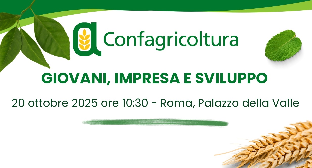 Confagricoltura e Ismea promuovono l’incontro “Giovani, Impresa e Sviluppo”, in programma il 20 ottobre 2025 a Roma, presso Palazzo della Valle. L’appuntamento sarà dedicato ad approfondire le opportunità finanziarie e gli strumenti di sostegno alla crescita delle imprese agricole giovanili, con interventi dei vertici di Confagricoltura e Ismea e contributi tecnici sui principali strumenti operativi.