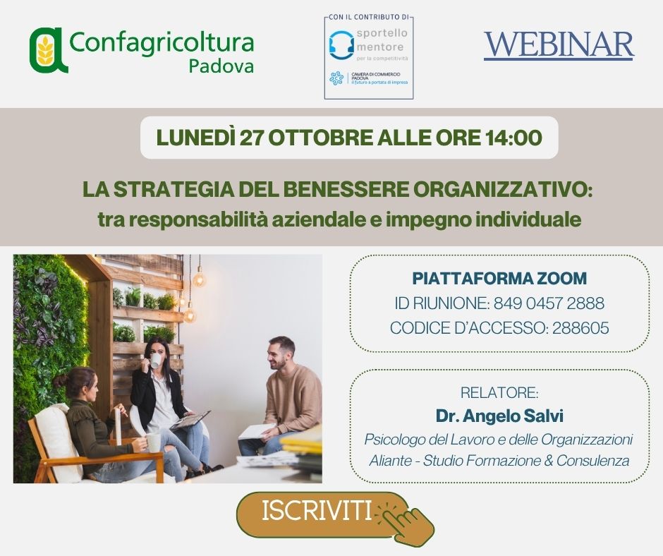 WEBINAR “La strategia del benessere organizzativo: tra responsabilità aziendale e impegno individuale”